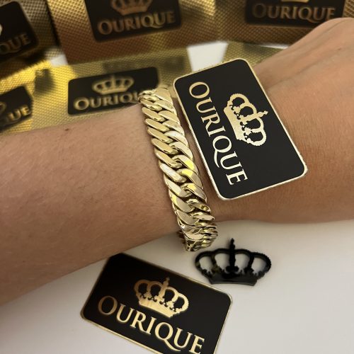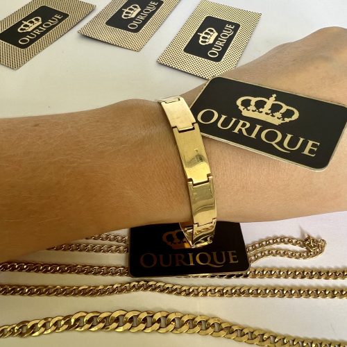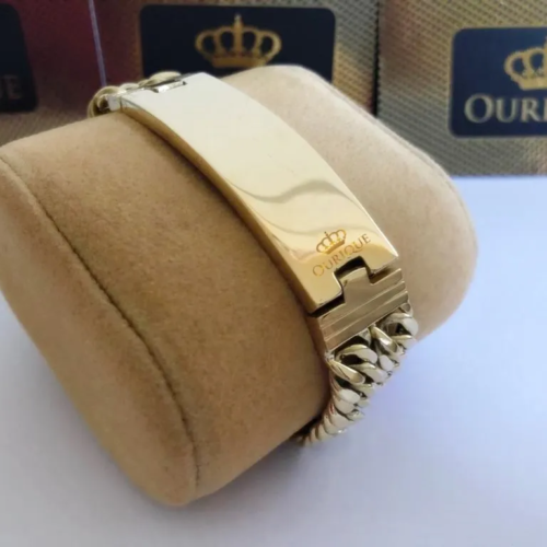 Pulseira Grumet Duplo Ouro 18k 750 25 Gramas com letra no fecho