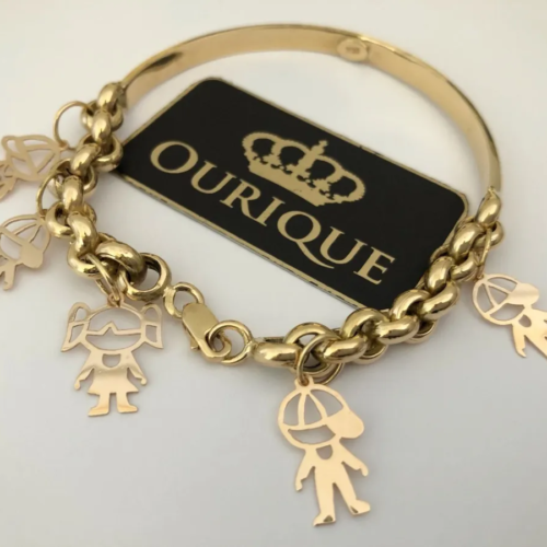 Pulseira Argola E Portuguesa Berloqueira Filhos Ouro 18k 750