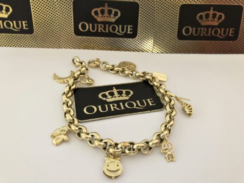 Pulseira Modelo Portuguesa e Pingentes Personalizados Ouro 18k 750